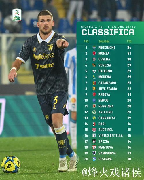 意大利乙级联赛第16轮战罢,本轮过后积分榜格局出现了颇具戏剧性的一幕:巴勒莫与威尼斯同积29分,并列站上积分榜前列,而上赛季刚从意甲降下来的斯佩齐亚则依旧深陷降级区泥潭,短时间内看不到明显的反弹迹象。